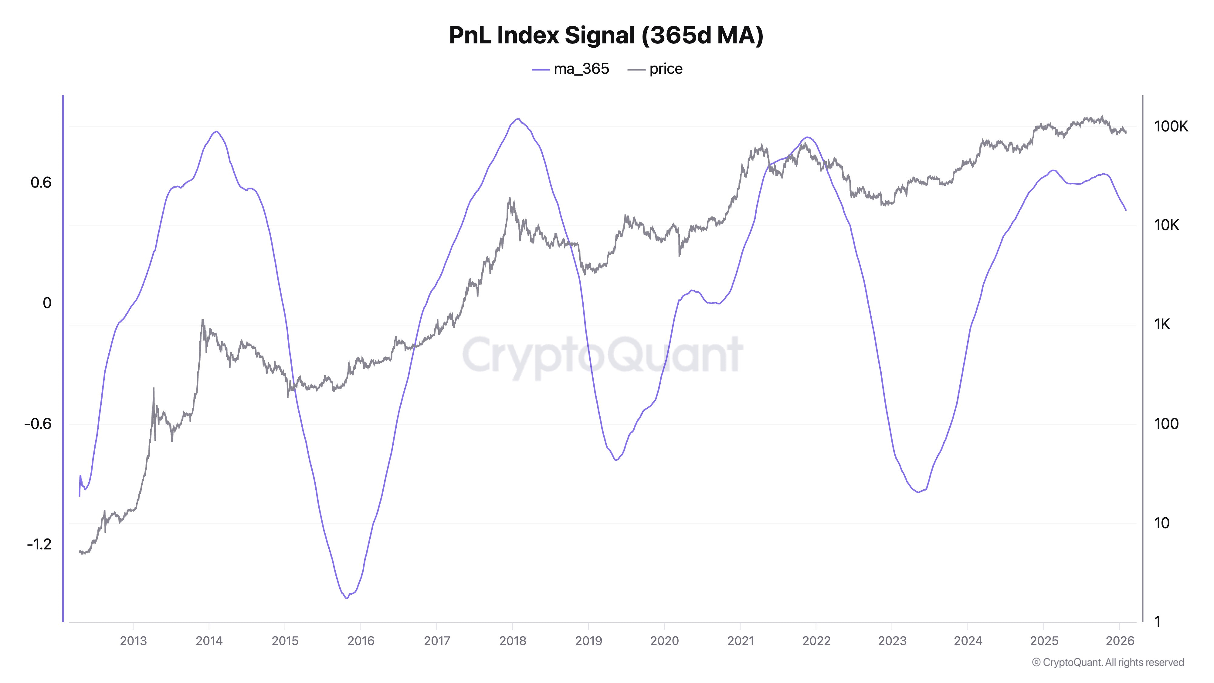 Os primeiros detentores de bitcoin, que acumularam durante meses de compras agressivas de ETFs à vista e compras sustentadas pela MicroStrategy, estão cada vez mais realizando lucros. Embora esses fluxos tenham ajudado a ancorar os preços perto de $100.000 durante grande parte do ano passado, a venda por parte de detentores de longo prazo continuou em 2026.
