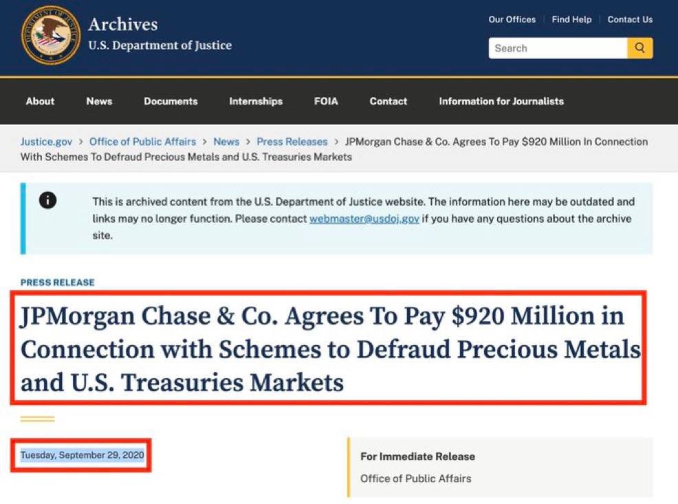 É o mesmo banco que foi multado em $920 milhões pelo Departamento de Justiça dos EUA e pela CFTC por manipular os preços do ouro e da prata entre 2008 e 2016.