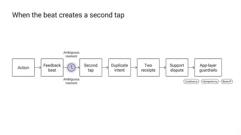 Você percebe isso quando a execução espera uma pausa que nunca chega. Não é uma falha. É uma arrastada que convida à ação. Aquela que transforma uma entrada em duas porque nada empurrou de volta. Agora a intenção duplicada, não porque alguém se apressou, mas porque a experiência nunca disse que contava.