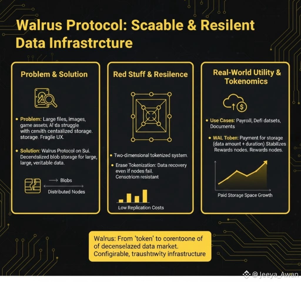 The Walrus protocol is more than just "another storage token." Its significance lies in solving a fundamental problem in the crypto space: determining the scalability of applications—that is, where the data is actually stored. Many blockchain projects struggle with large files, images, game assets, AI datasets, or documents. They often opt for centralized servers. Users abandon this technology not because it's "too advanced," but because of its fragile and unstable user experience.