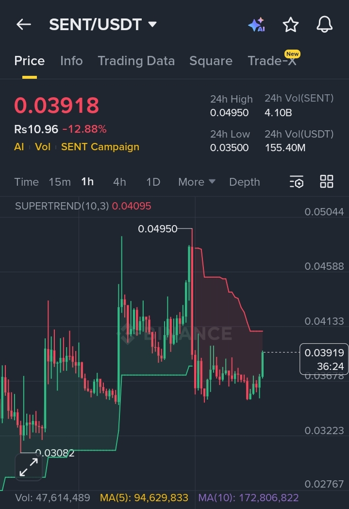 $SENT A SENT está ganhando um forte momento de alta à medida que a pressão de compra aumenta e o volume continua a subir. Isso geralmente significa que mais traders estão entrando em posições, esperando mais alta. Uma razão principal por trás desse movimento é a melhoria do sentimento do mercado e o renovado interesse em altcoins. Quando a confiança retorna, moedas de menor capitalização como a SENT costumam se mover mais rápido que o resto do mercado.