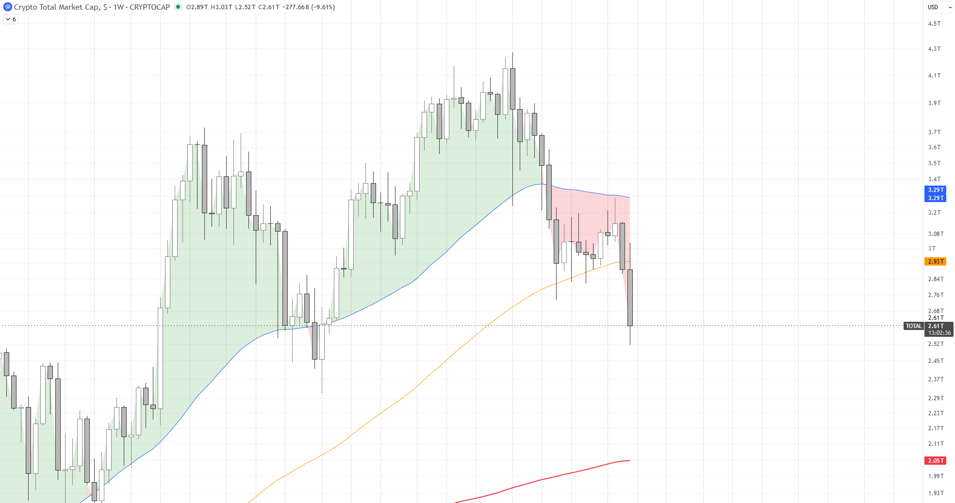 A capitalização total do mercado, após se recuperar para 3.29T, caiu para 2.61T ~ -20%.