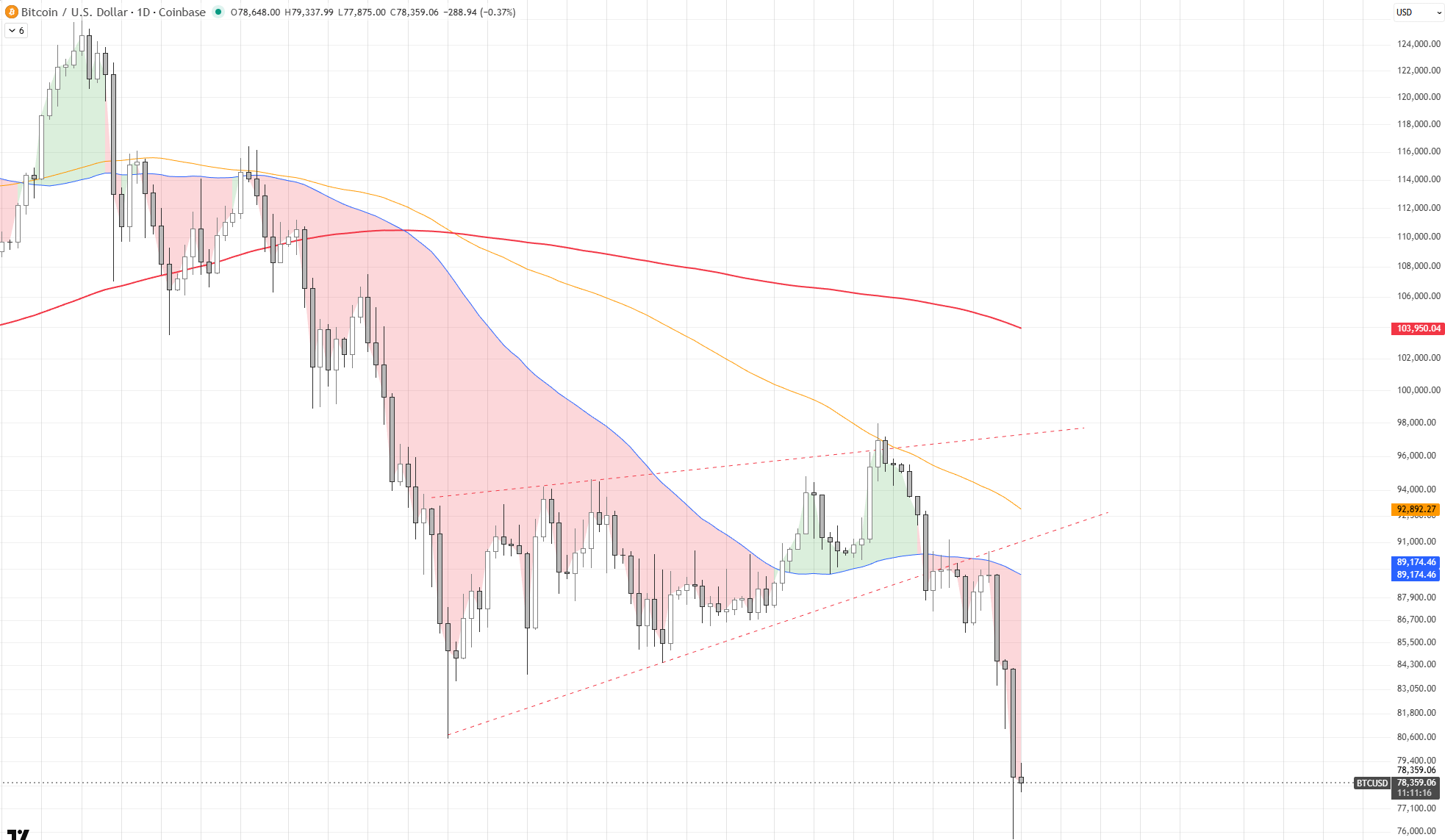 No momento da escrita, o Bitcoin está sendo negociado a $78K, após romper o fundo da região de suporte em $81K anteriormente.