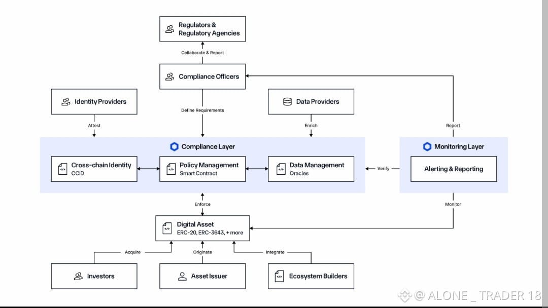 Solution: The Chainlink compliance standard, powered by the Onchain Compliance Protocol (OCP). OCP is an open, protocol-level specification defining how to utilize DONs to define and store compliance data onchain and utilize identity data and policies in smart contracts. OCP allows existing identity systems (e.g., GLEIF’s vLEI, ERC-3643) to be integrated with onchain infrastructure via the Cross-Chain Identity (CCID) framework, with policies enforced onchain and offchain using the Policy Manager. Compliance policies can be embedded directly within smart contracts and any token type, credentials can be verified without exposing personal data, and identity attestations can be coordinated across blockchains and jurisdictions. This is enabled by CCT and its compliance extension, which functions as a connector between smart contracts and CCID and the Policy Manager.