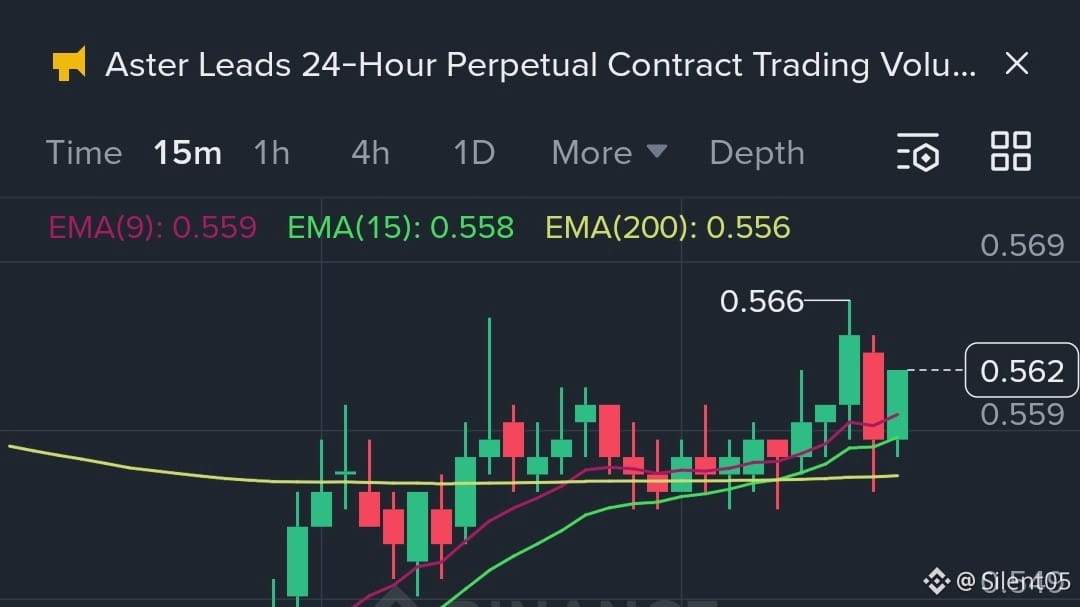 Para o movimento intradiário de hoje na Binance Square, $ASTER provavelmente vai sustentar sua tendência de alta se se mantiver acima do suporte de 0.559 (EMA9). Os alvos intradiários potenciais podem ser 0.566 ou mais, acompanhando o recente momentum e aumento de volume. Os traders devem observar o nível de 0.552 como suporte imediato; uma quebra abaixo pode desencadear uma correção de curto prazo em direção a 0.540. Monitorar picos de volume e cruzamentos de EMA ajudará a confirmar o viés altista para posições intradiárias. Você deseja uma estratégia específica de entrada/saída ou dicas de gerenciamento de risco para negociação de $ASTER?
