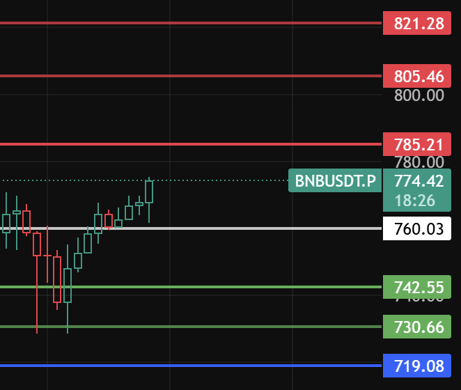 Atenção ao nível 760 de BNB durante a noite; desde que não quebre esse nível em uma correção, a reação de 1-2 horas continuará. O nível de resistência acima deve observar 785-805-821!