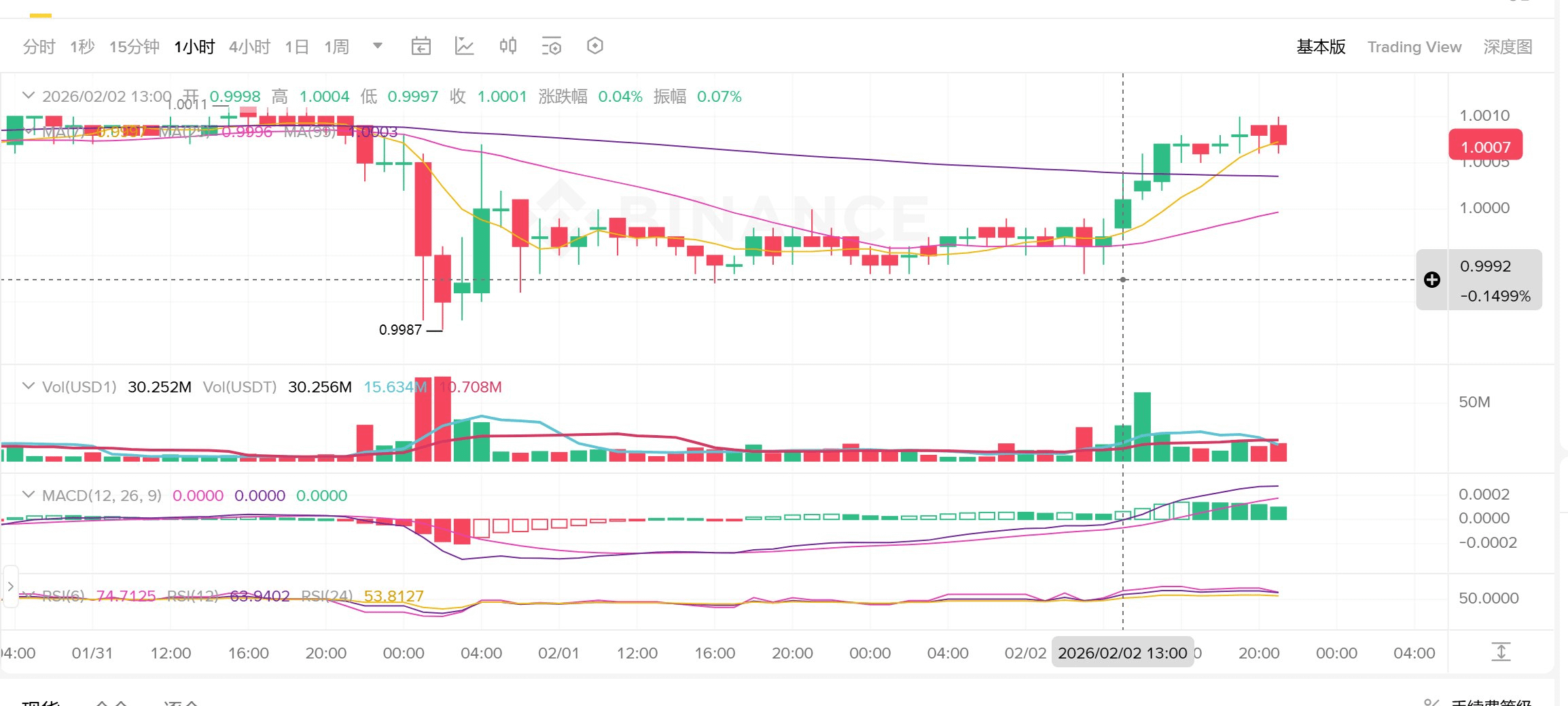 Assim, após o envio das recompensas ao meio-dia, o preço do USD1/USDT subiu instantaneamente, entrando novamente na faixa de prêmio. O preço atual do USD1/USDT é 1.0007.