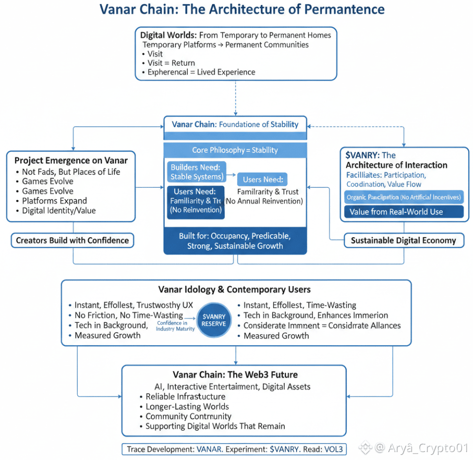 The founders of Vanar Chain realized that permanence is not a complex thing, but stability. Constructors do not require infinite features; they require systems which will not fall apart as they grow. Users do not need to be informed about new mechanics every year, they prefer familiarity and trust. Vanar was built as infrastructure that is intended to be occupied initially, to be predictable, strong, and able to sustain long-term growth without having to be reinvented on a regular basis. Such an attitude pervaded all levels of the chain, including implementation and ecosystem architecture.