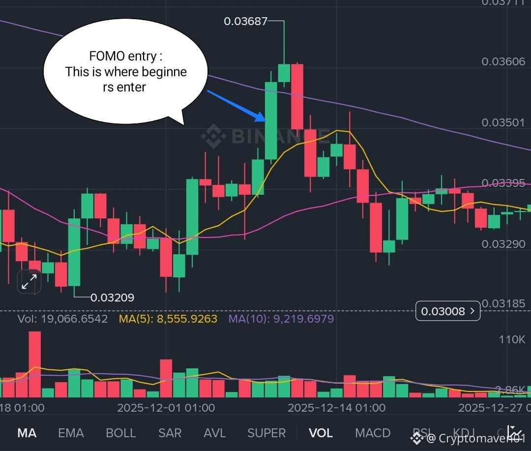 When price starts moving up quickly, emotions take control. You open the chart and see big green candles. Twitter is talking about it. Telegram groups are shouting “to the moon.” Influencers are posting rocket emojis. Everything around you is screaming that you are late.