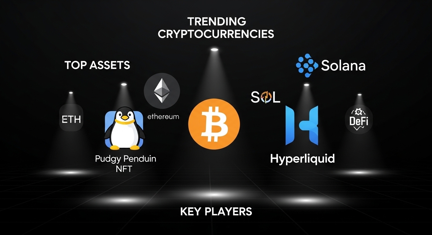 De acordo com dados de tendências ao vivo, as criptomoedas mais pesquisadas incluem Pudgy Penguins (PENGU), Bitcoin (BTC) e Hyperliquid (HYPE). Esses tokens mostram um interesse elevado em comparação com outros, com base no volume de pesquisas e na atenção social.