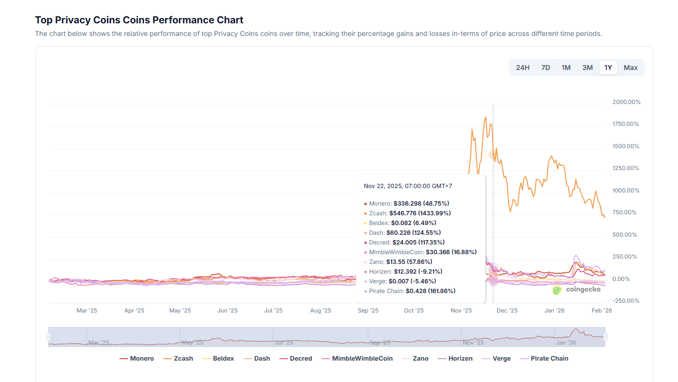 Ano 2025: O tema da segurança ressurgiu fortemente no contexto da crescente supervisão financeira e regulamentações mais rigorosas do que nunca. O Zcash se destacou com um desempenho notável em comparação com o Bitcoin desde o início do ano, enquanto Monero e Dash também relataram um desempenho positivo significativo.
