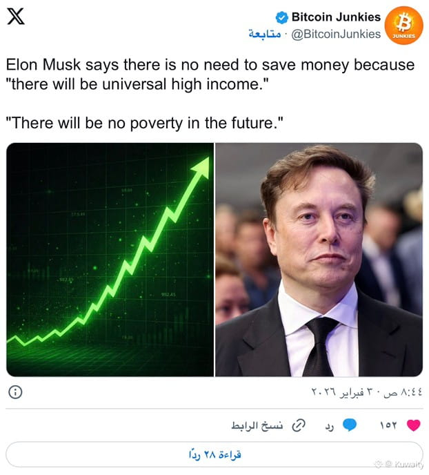 • يتوقع إيلون ماسك تحقيق دخل مرتفع للجميع