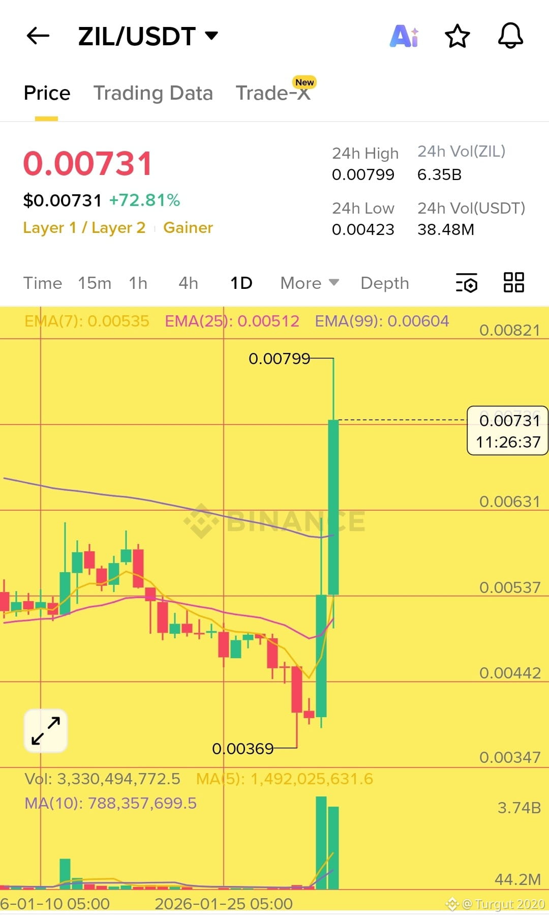 ZIL’s sudden +70% move is a classic example of liquidity grab + trend reversal + momentum ignition. This wasn’t random hype — the chart was setting this up.