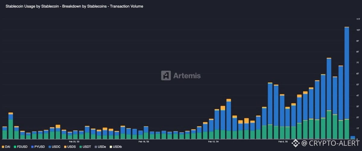 To put that in perspective, the total stablecoin volume for the entirety of last year was roughly $33 trillion. In just 30 days, the market processed nearly a third of that annual figure. The "boring" side of crypto is officially moving at warp speed. ⚡