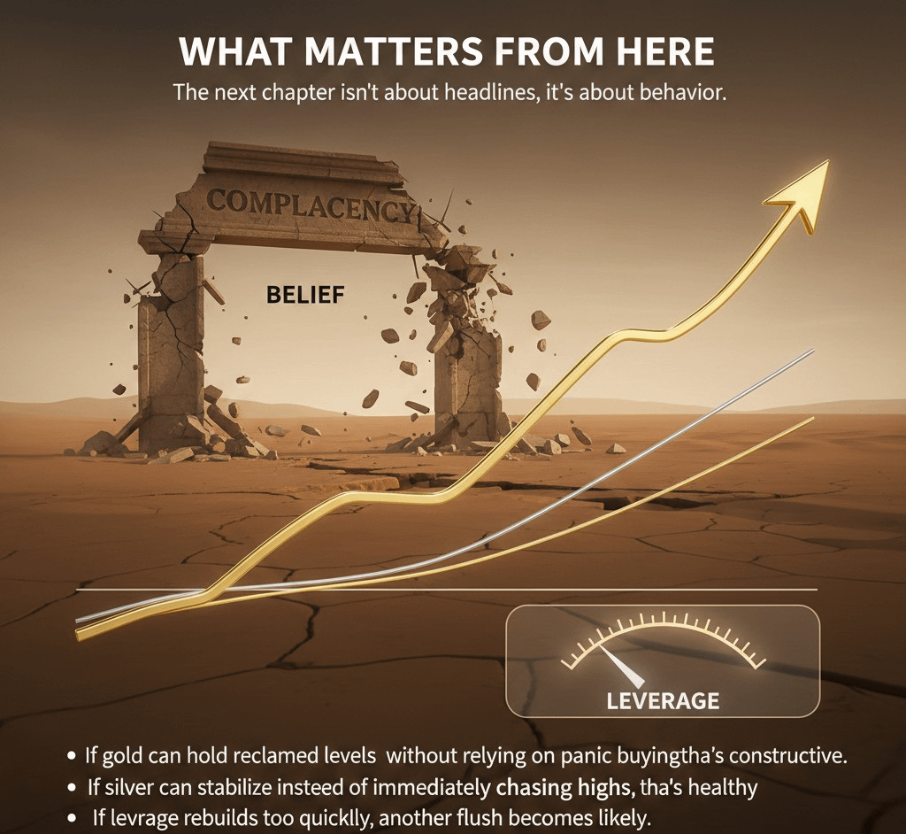 Este episódio será lembrado não porque o ouro caiu ou a prata se recuperou, mas porque lembrou a todos uma verdade simples: os portos seguros ainda são mercados. Eles ainda caçam desequilíbrios. Eles ainda punem a superlotação. Eles ainda exigem respeito.