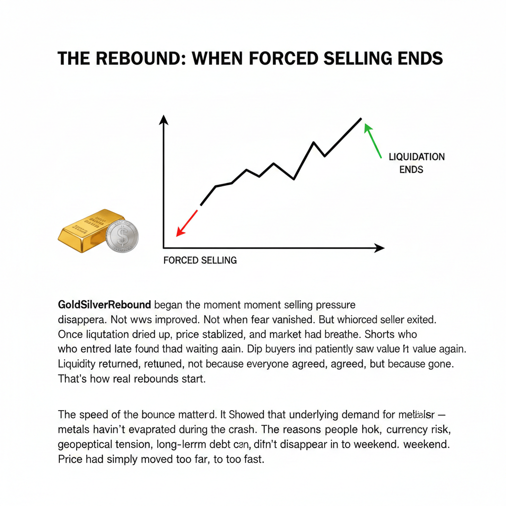 O rebote do ouro e da prata começou no momento em que a pressão de venda desapareceu. Não quando as notícias melhoraram. Não quando o medo desapareceu. Mas quando o último vendedor forçado saiu. Uma vez que a liquidação secou, o preço se estabilizou, e o mercado finalmente teve espaço para respirar.