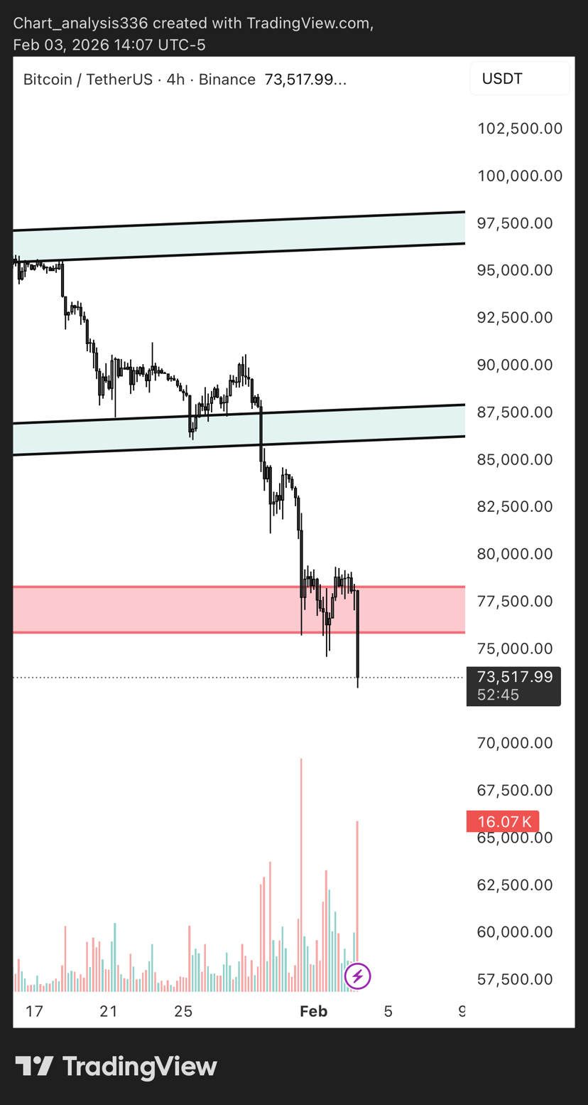 O BTC perdeu uma zona de suporte de maior prazo que havia suportado múltiplos testes. Esse nível não era apenas uma linha no gráfico — era onde a tendência de alta permanecia válida. Uma vez que o preço fechou abaixo, o mercado virou de comprar quedas para vender ralis.