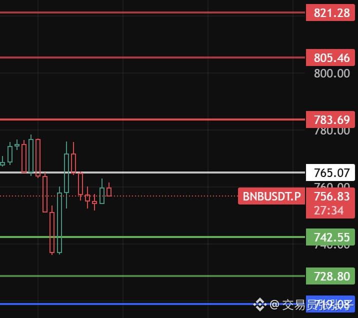 如果今天1-2小时级别收不上765上方,那说明小级别反弹没有力度,再次下探下方支撑位留意742-728-719这几个位置附近!#BNB走势