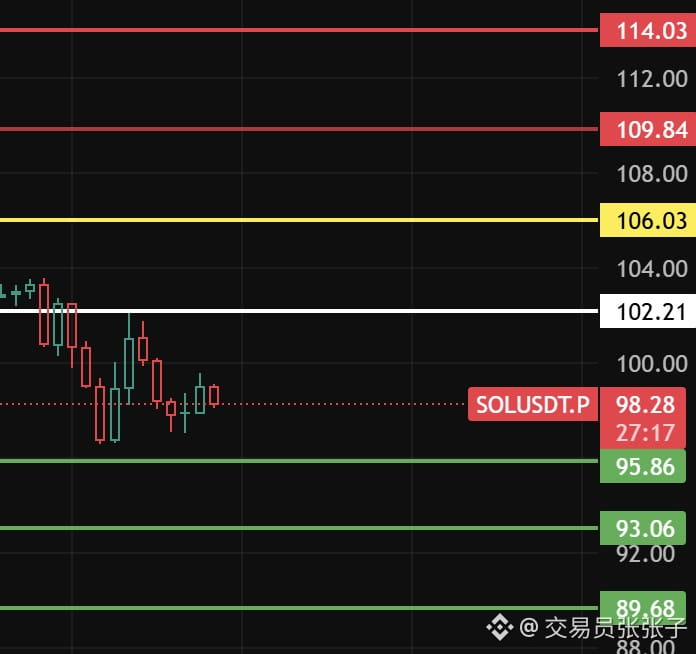 如果今天1-2小时级别收不上102上方,那说明小级别反弹没有力度,再次下探下方支撑位留意95-93-89这几个位置附近!#solana