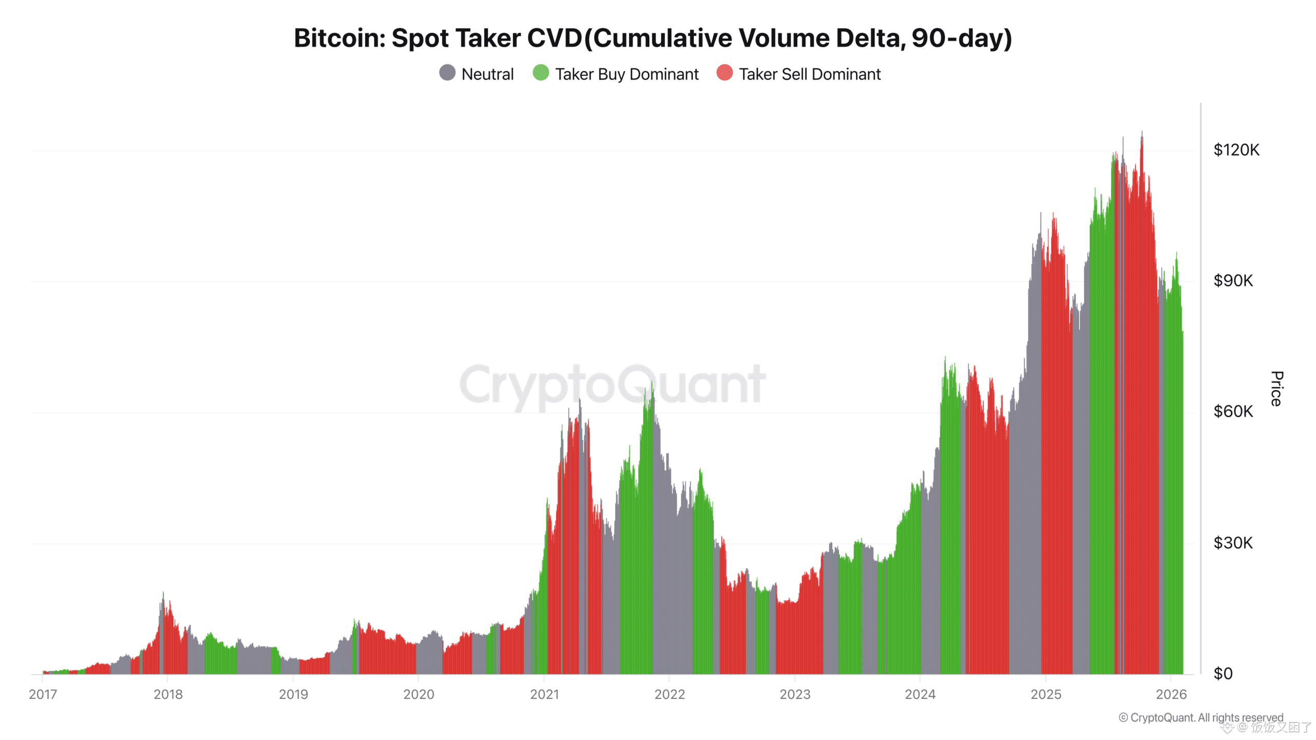 尽管整体市场偏弱,但现货市场仍提供了短期反弹的可能。近期数据显示,从1月19日至1月26日,买家购买了约21亿美元的比特币,现货交易累计成交量差值(CVD)也转为正值。这意味着尽管价格承压,买家在现货市场的占比正在悄然增加,短期内或能支撑反弹。