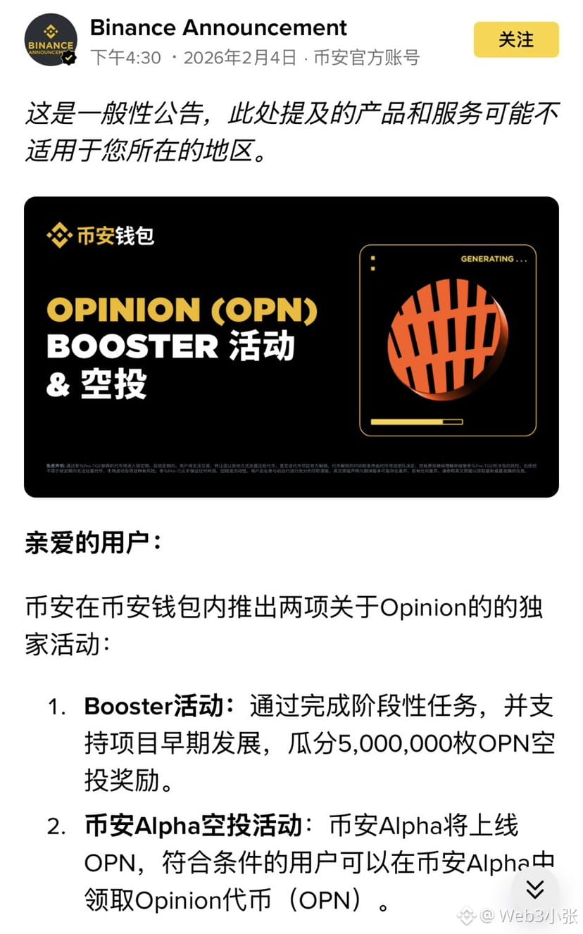 兄弟们,币安 MPC 钱包(无私钥钱包)的“财富密码”更新了,这次是 @opinionlabsxyz 的 $OPEN 任务。我研究了一下,这不只是简单的薅羊毛,背后的逻辑挺有意思。