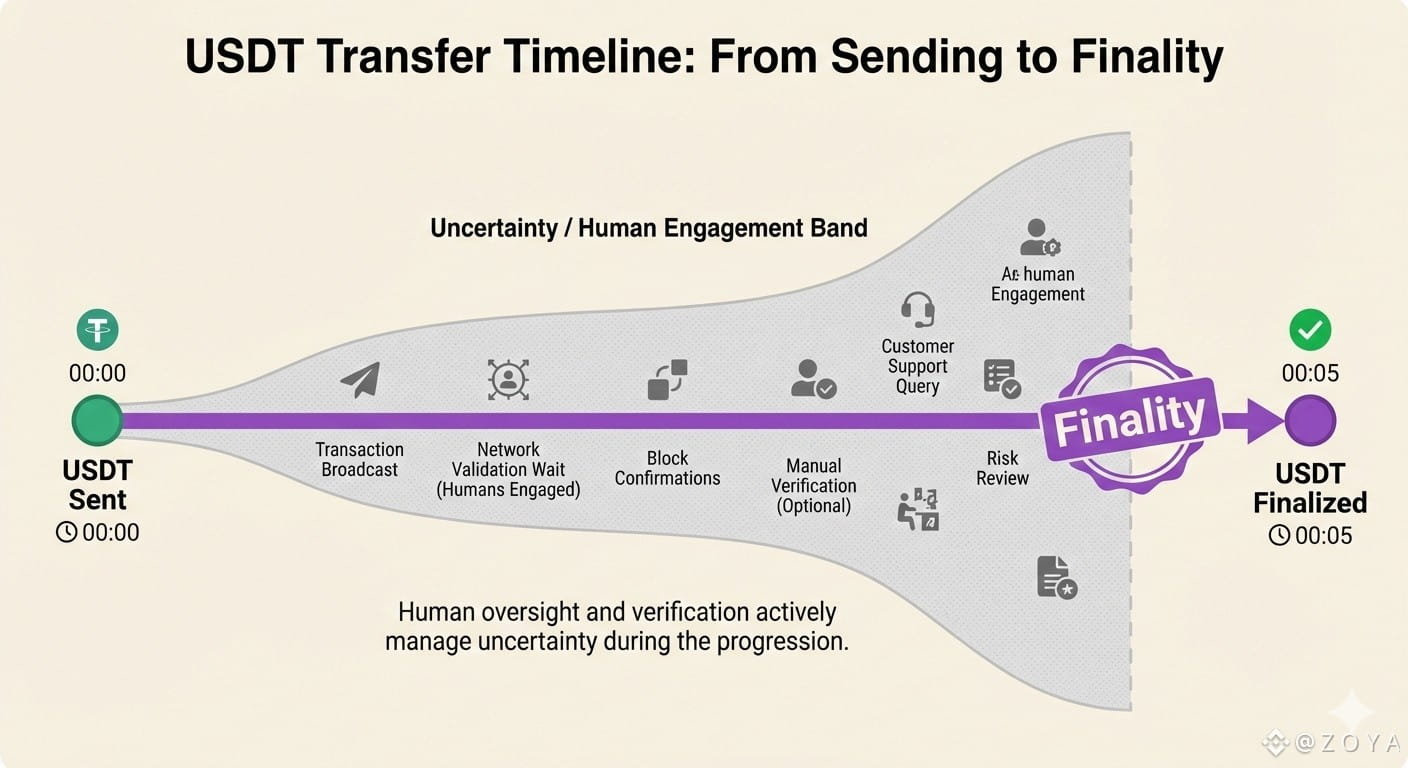 USDT is sent. The wallet relaxes. The chain finalizes. Nothing blinks red. From the system’s point of view, the job is done. From the human side, it isn’t. No one closes the task. Treasury doesn’t book. Ops keeps the tab open. The counterparty asks, again, if it’s safe to move on.
