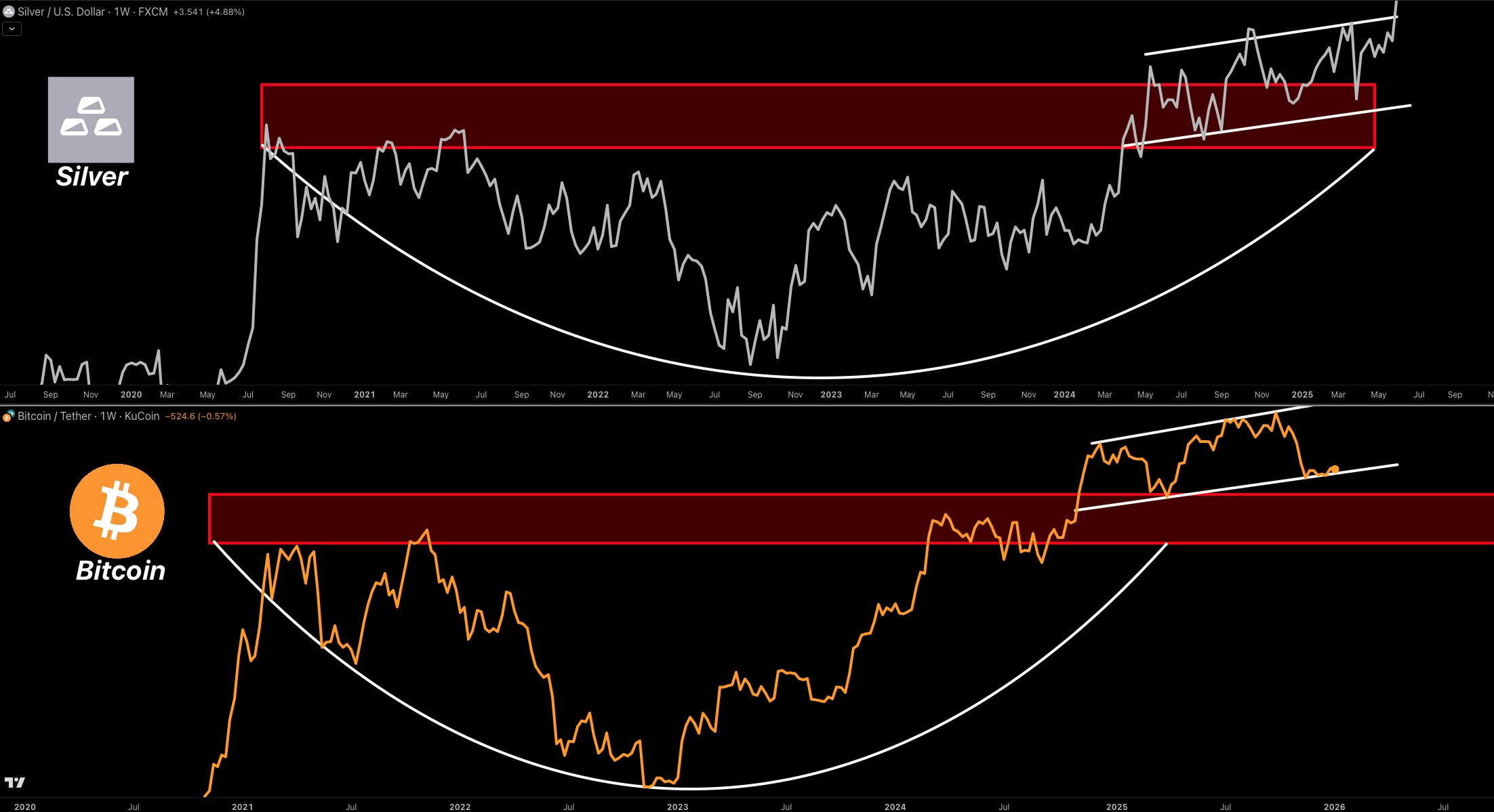 Já vimos este filme antes. Ativos como a prata passaram anos esculpindo estruturas semanais semelhantes, moendo, frustrando, convencendo a todos de que nada aconteceria... até que se resolvessem com autoridade.