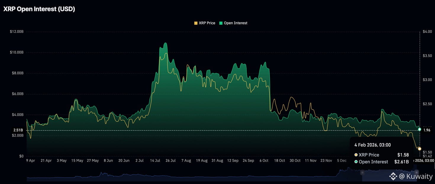 يبقى سوق مشتقات XRP ضعيفًا حيث يغلق المتداولون مراكزهم، مما يدفع الفائدة المفتوحة للعقود الآجلة إلى 2.61 مليار دولار.
