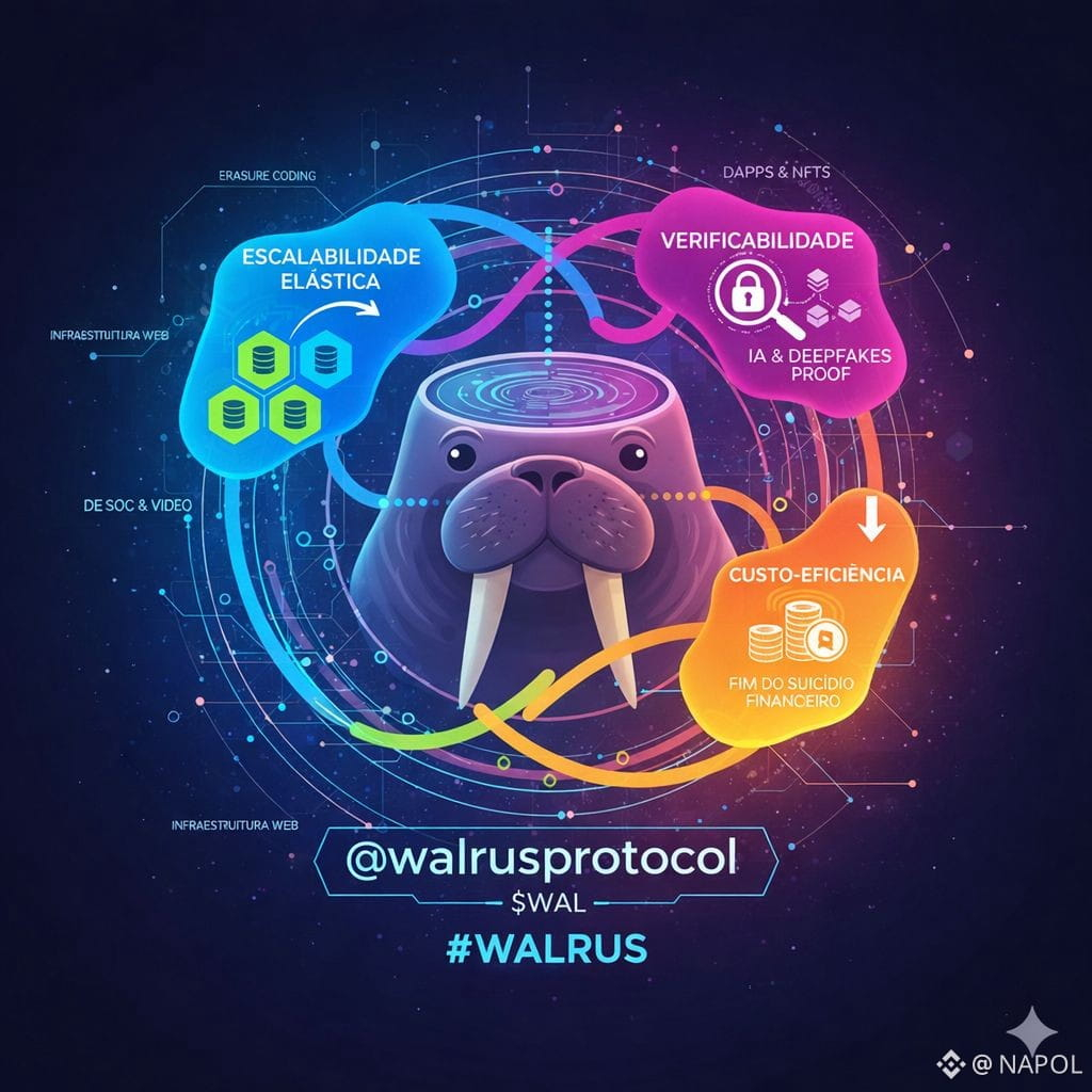 Custo-Eficiência: Armazenar TBs de dados em blockchain costumava ser um suicídio financeiro. O Walrus muda essa matemática, tornando viável para desenvolvedores reais.