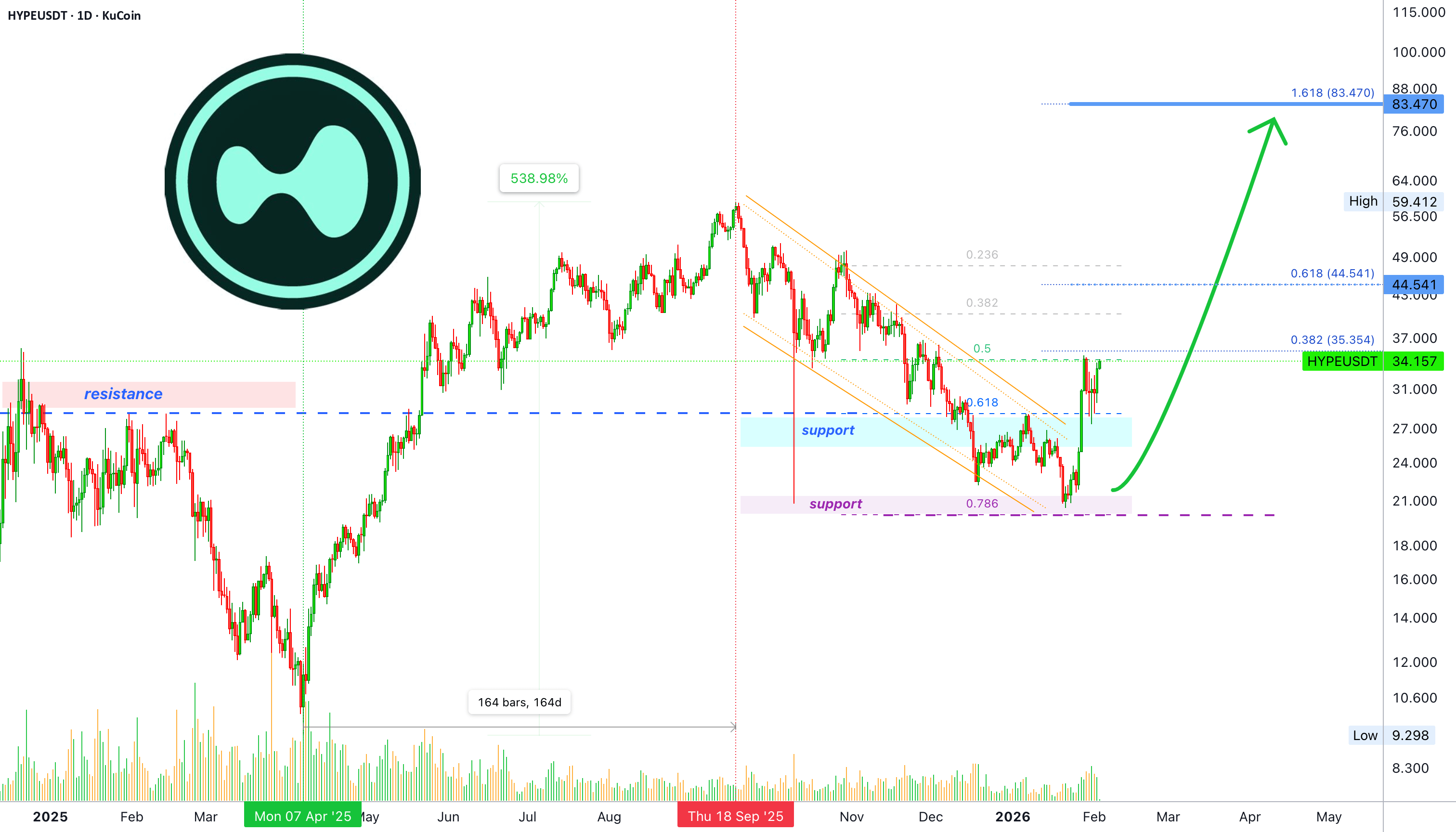 Com Bitcoin, Ethereum e muitos outros projetos alcançando suporte de longo prazo, o HYPEUSDT permaneceu alto e forte. Isso mostra que os compradores estão presentes, os vendedores estão fracos neste par de negociação.