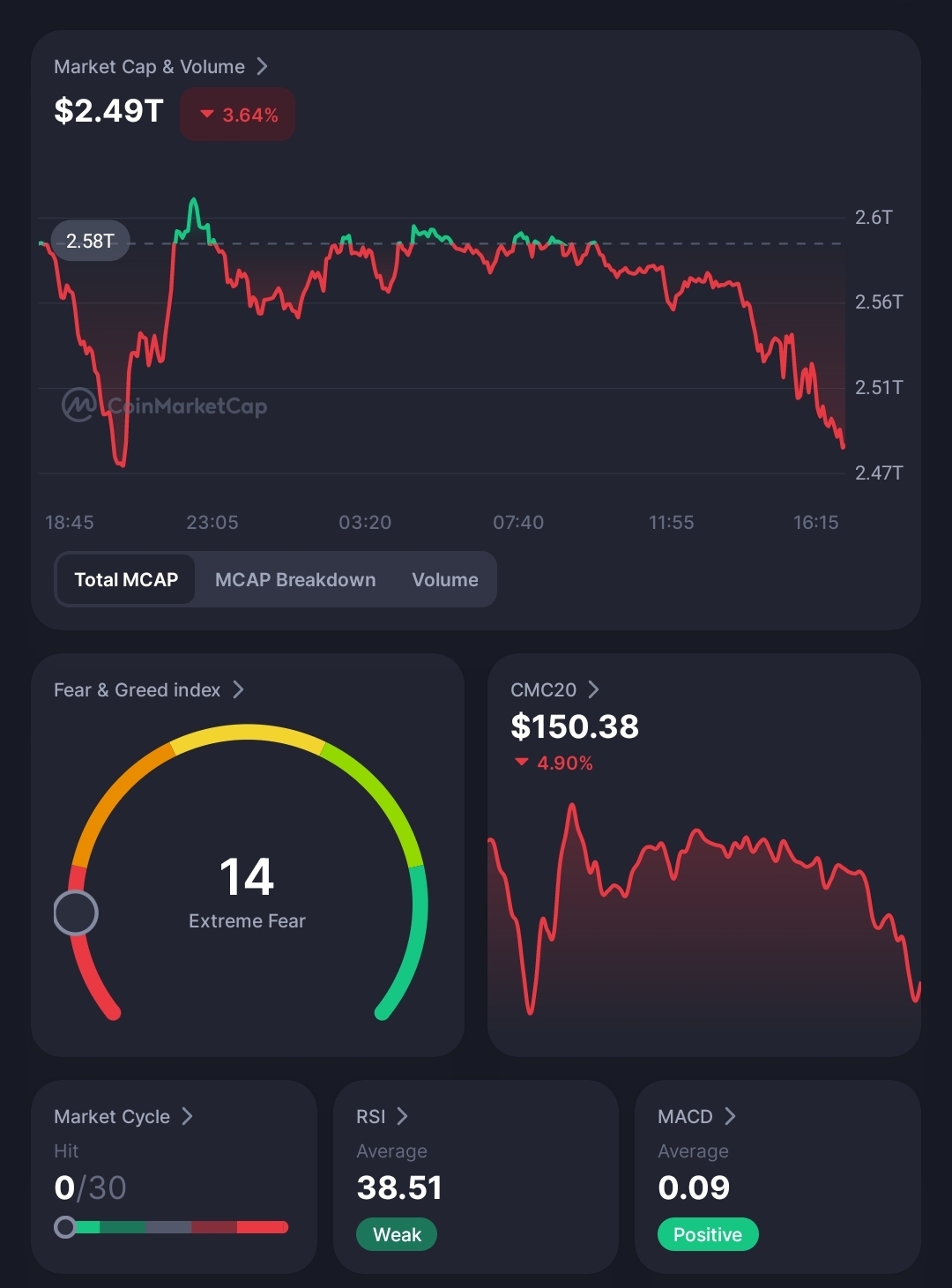 A capitalização total do mercado de criptomoedas caiu significativamente, eliminando centenas de bilhões em valor. Bitcoin e Ethereum estão particularmente afetados, flertando com níveis de suporte chave que os investidores estão observando de perto.