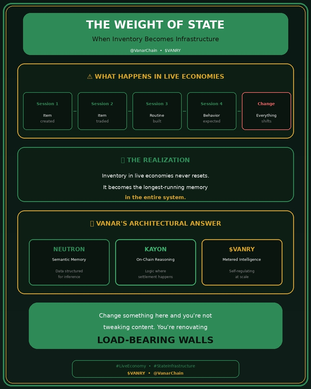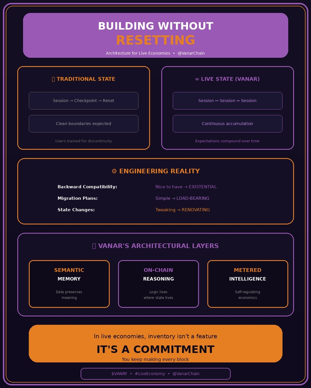As economias blockchain ao vivo em plataformas como Vanar funcionam de uma maneira. Às vezes, sessões acontecem ao mesmo tempo. Trocas são concluídas enquanto novas ações estão esperando para acontecer. Você recebe recompensas no meio de fazer algo. Seu inventário mantém um registro de tudo o que acontece. Ele não pergunta se está tudo bem começar de novo. A economia blockchain faz o que você diz para ela fazer. Tudo o que acontece depois disso é baseado no que você fez antes. Tudo isso acontece silenciosamente. Continua acontecendo o tempo todo. É algo que não pode ser mudado.