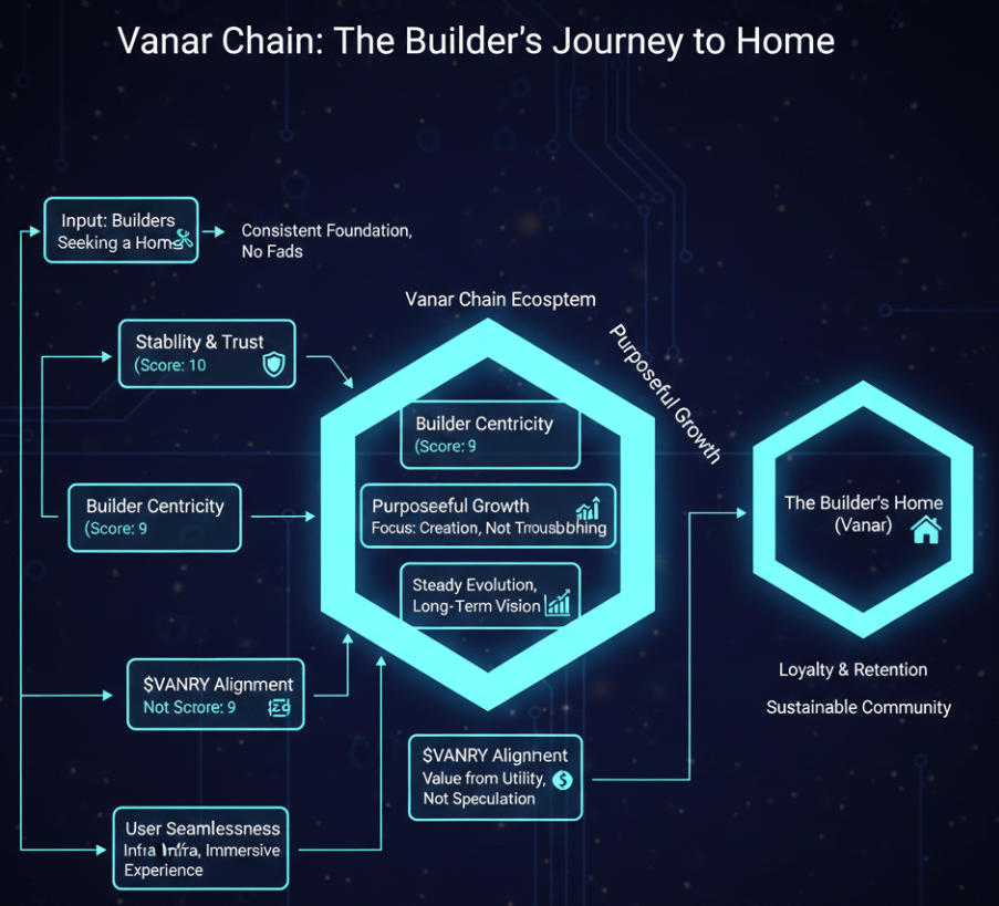 The issue of home will be made more evident as Web3 matures. Constructors will tend to migrate to systems where they can develop without necessarily moving around. Social fraternities will develop around platforms that are not experimental. Digital worlds will pose the need to have infrastructure that does not fade away when the focus moves elsewhere. Vanar Chain is now gearing towards that upcoming, making it a place where builders do not come, but they remain.