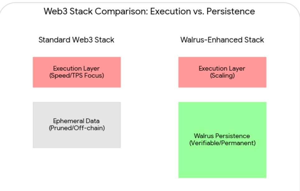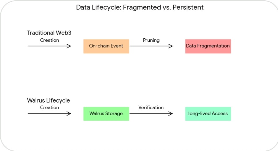 Walrus aborda este problema de uma maneira fundamentalmente diferente. Em vez de tratar os dados como algo temporário que é empurrado para fora da cadeia e esquecido, trata os dados como verificáveis, programáveis e de longa duração. Essa única escolha de design remodela a forma como as aplicações são construídas. Os desenvolvedores não precisam mais comprometer entre descentralização e confiabilidade; ambos estão incorporados na mesma camada.