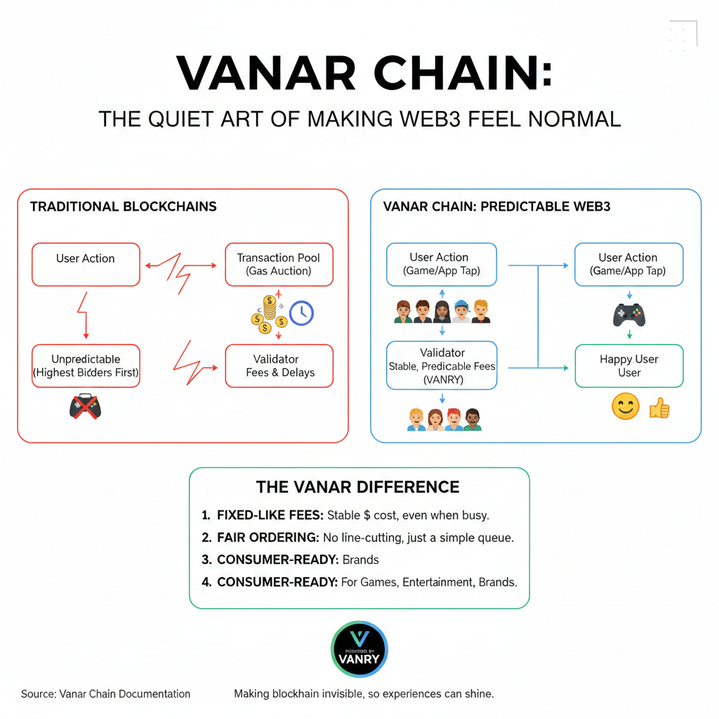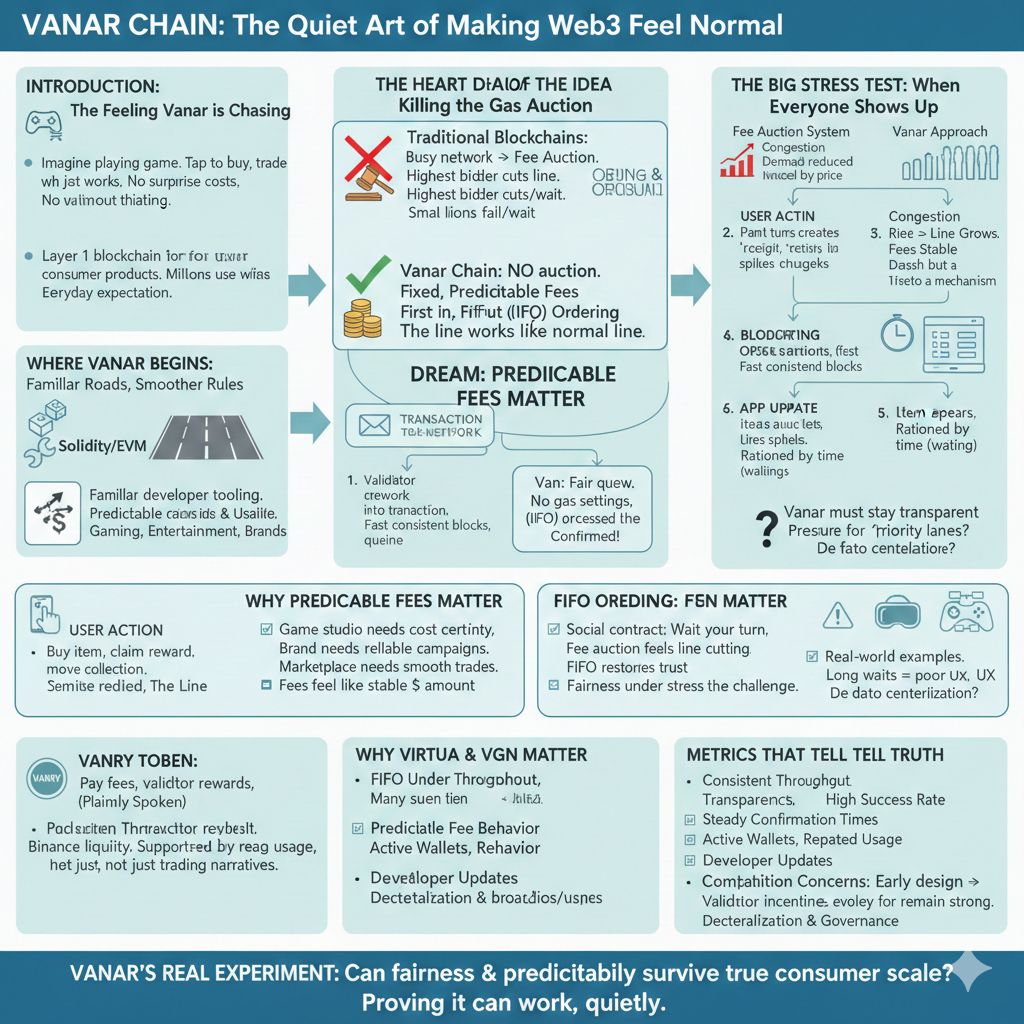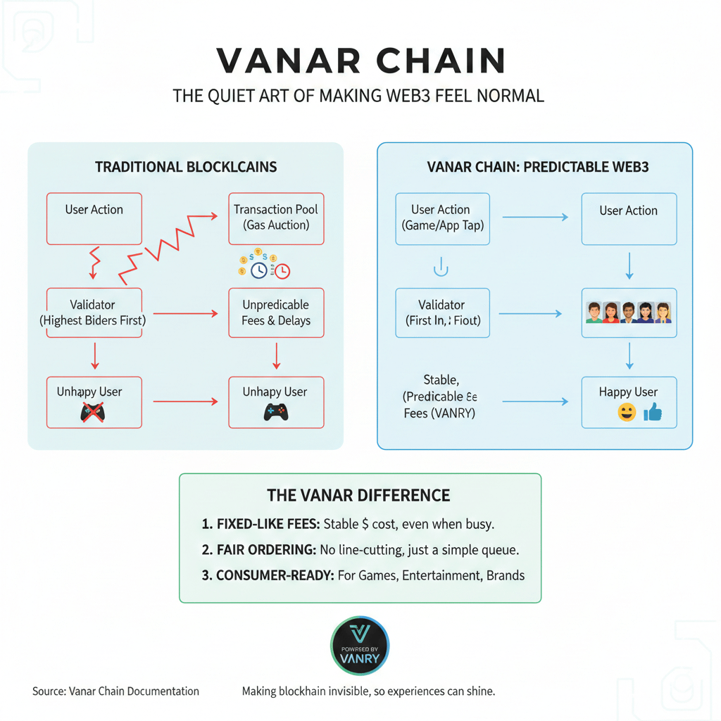 Vanar’s vision is almost simple enough to underestimate. It wants blockchain to stop feeling like a gamble and start feeling like infrastructure. It wants tiny actions to stay tiny, even when the network is busy. It wants the line to feel fair, not like a marketplace where the richest voice always goes first.