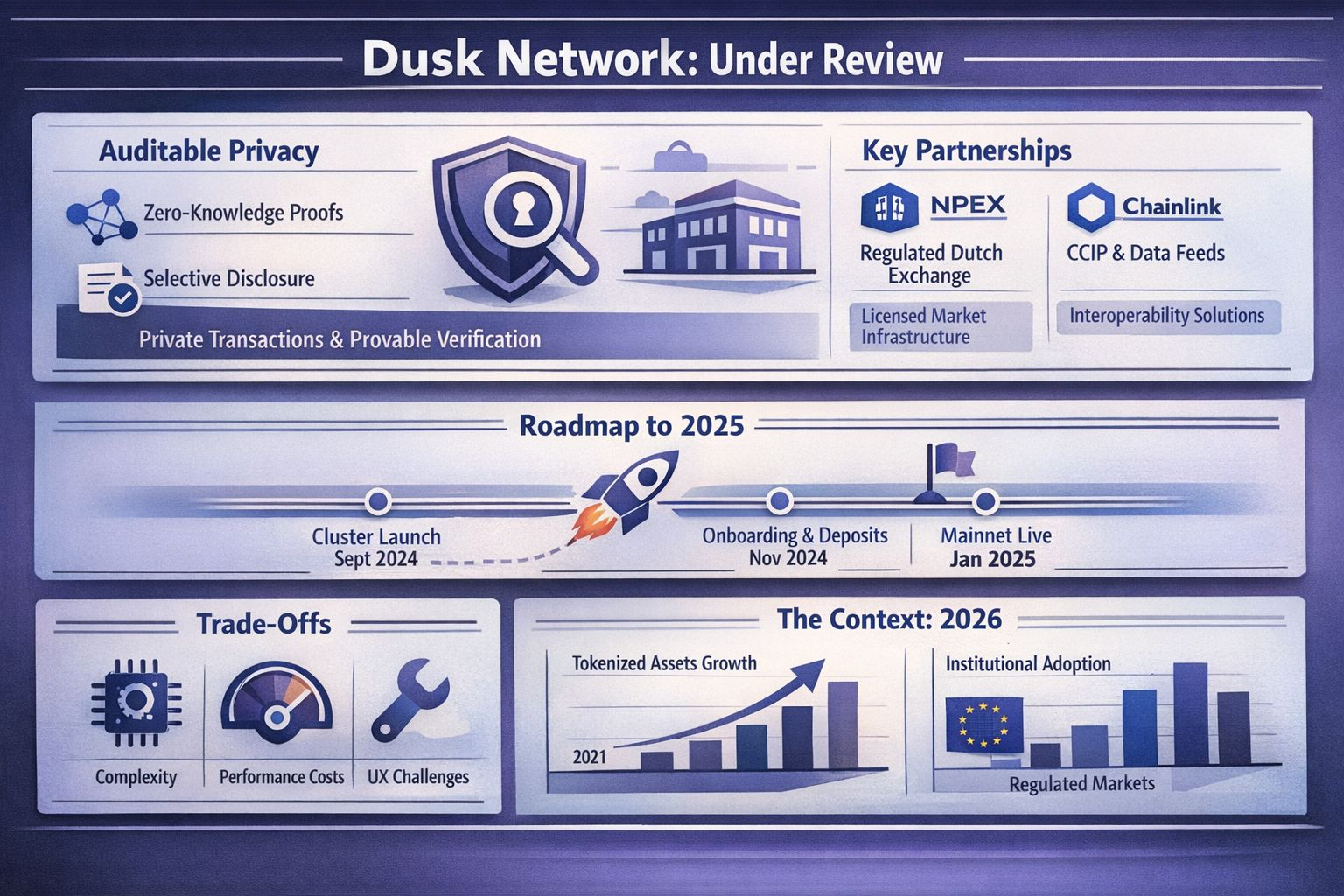 @Dusk Há um certo tipo de projeto que só se torna interessante uma vez que deixa de ser uma promessa e começa a deixar a papelada para trás. Não é um tópico de roadmap, não é um trailer chamativo—é documentação real, anúncios datados, parceiros nomeados, o tipo de coisa que você pode apontar mais tarde e dizer: “Certo, você disse que faria isso. Fez?” A Dusk Network entrou nessa zona. E essa é uma grande razão pela qual está recebendo mais atenção ultimamente: está mirando lugares onde erros não são apenas embaraçosos, eles são caros—negociação regulamentada, relatórios auditados, e o mundo muito pouco glamoroso dos valores mobiliários reais.