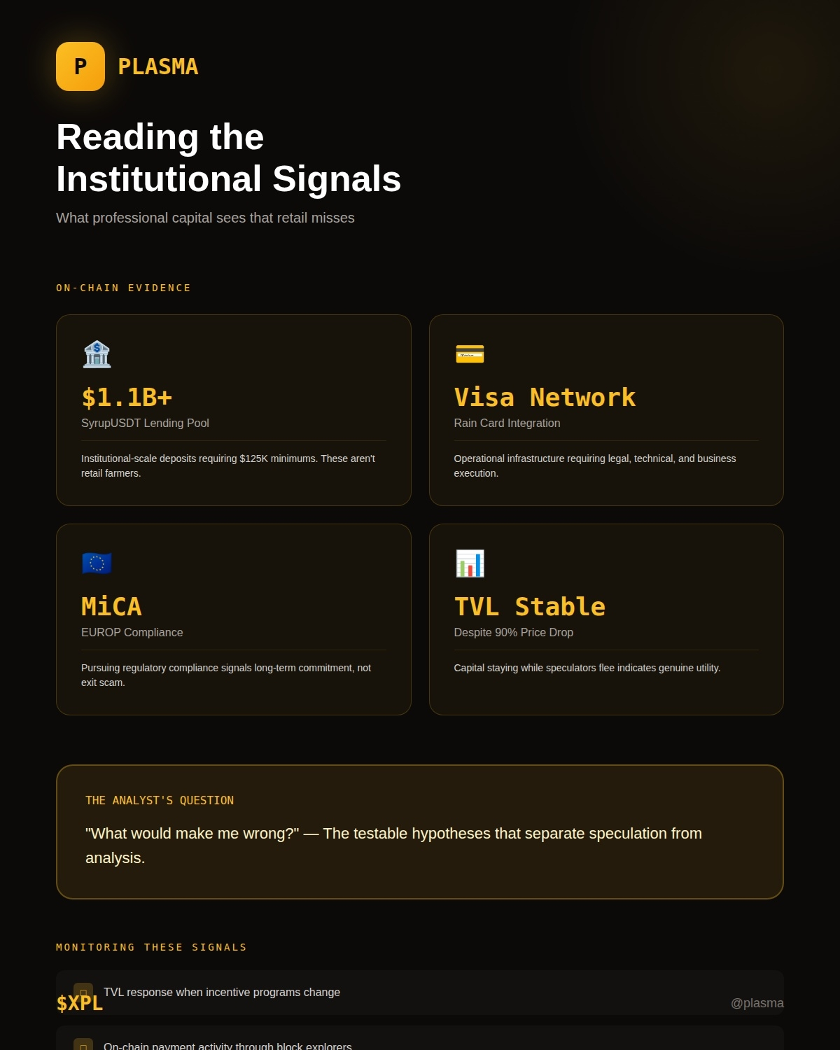 Todo trader experiente sabe que o preço é um indicador defasado de valor. Ele reflete sentimento, liquidez e especulação muitas vezes mais do que fundamentos. No entanto, olhamos para gráficos como se contivessem verdade. Às 3 da manhã na noite passada, forcei-me a olhar em outro lugar para @Plasma sinais.