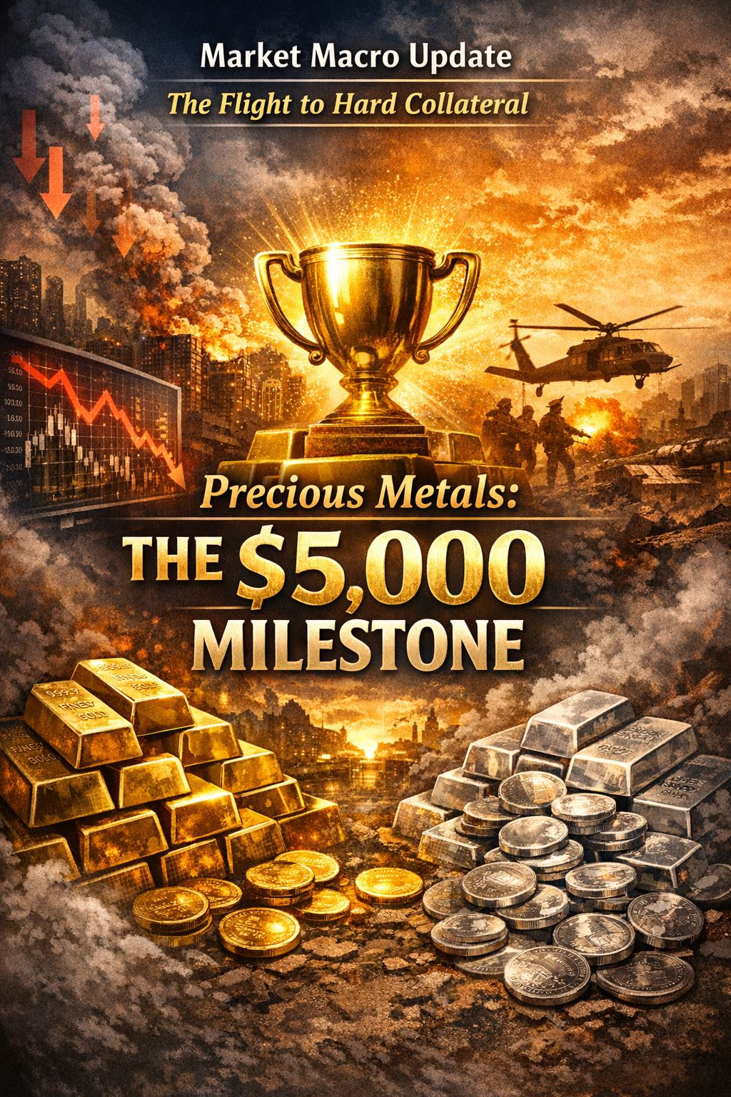 Gold has officially shattered expectations, surging toward the $5,000 mark as investors flee to safety. This historic rally isn't just about a fluctuating US dollar; it’s a pure "fear play." Global instability and structural market flaws are driving a massive rotation into gold and silver. Investors are aggressively shedding "risk-on" assets in favor of the ultimate havens, signaling a deep-rooted lack of confidence in the current financial climate.
