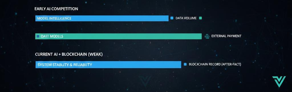 Eu vi muitos tokens vinculados à IA negociarem como jogos de opcionalidade. Eles flutuam quando as narrativas são fortes e desinflam rapidamente quando a atenção muda. Vanar negocia mais como capital de infraestrutura. Não se valoriza tanto com slogans, mas também não se desmorona quando o mercado começa a fazer perguntas desconfortáveis. Isso me diz que os incentivos não são puramente promocionais. Há menos alavancagem reflexiva e mais posicionamento à vista. Você pode sentir isso em como o volume se expande e contrai. Ele respira em vez de ofegar.