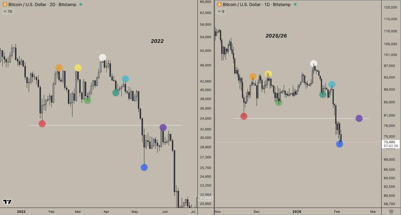 Não aposte tudo em um único número. Divida seus recursos e faça aportes em partes. Vocês podem considerar dividir o capital em 3–4 partes, entrando gradualmente em torno das marcas de 75.000 USD, 72.000 USD e reservando a parte ‘última bala’ para um cenário pior na faixa de aproximadamente 65.000 USD.
