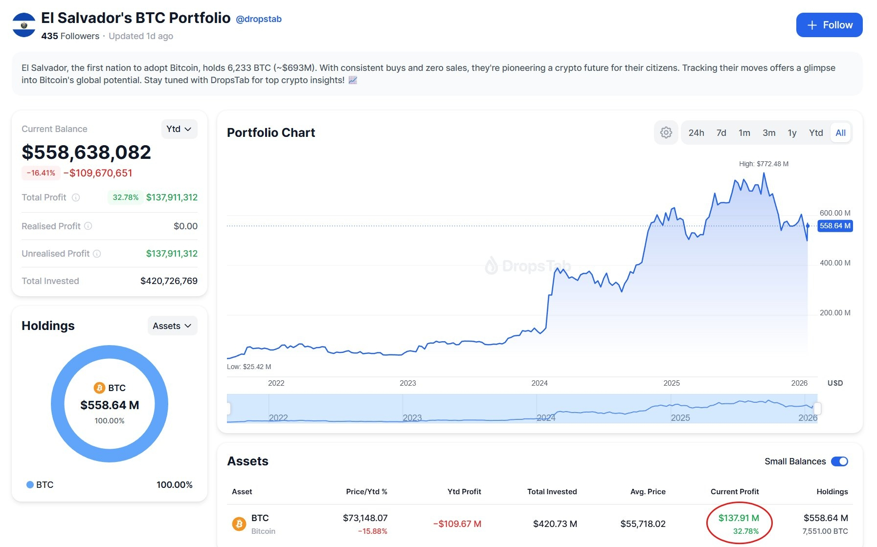 Ainda assim, mesmo após a recente queda do mercado, El Salvador ainda possui cerca de $137M em lucro.