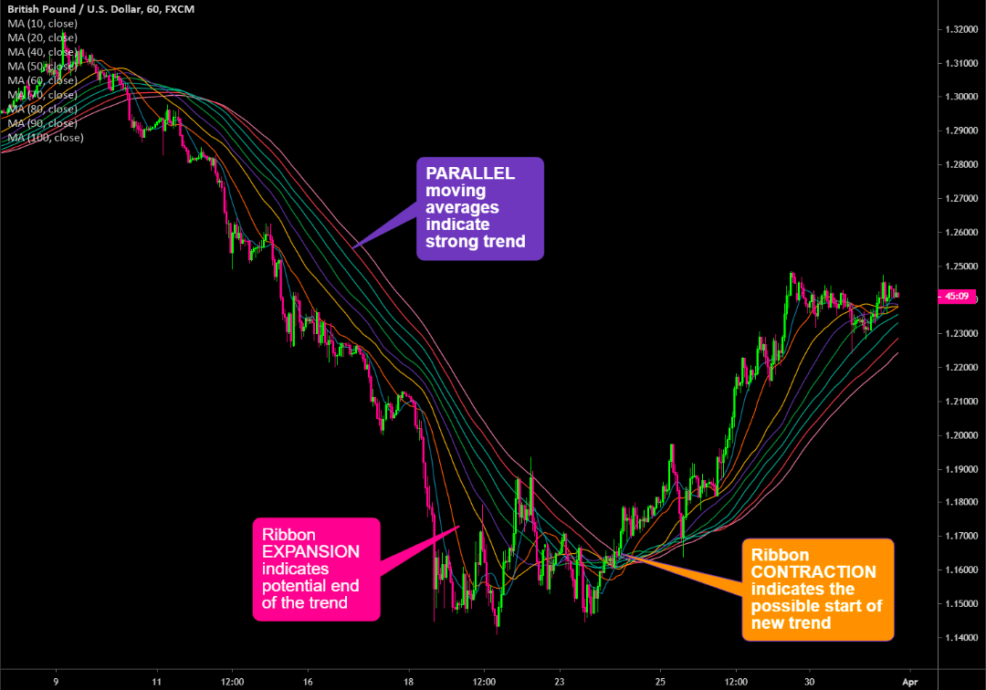 The moving average ribbon takes this idea further. Instead of two lines you watch several moving averages flow together. When they spread out and move in harmony the trend feels clean almost effortless. Price respects structure and pullbacks feel controlled. When those lines bunch together the market is uncertain. Direction is missing and patience becomes more valuable than action. The ribbon helps traders avoid forcing trades when the market has nothing to offer.
