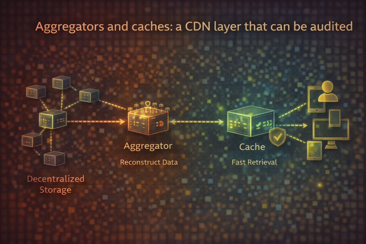 An aggregator acts like a reconstruction service. It retrieves fragments from the storage network, rebuilds the blob, and exposes it through standard interfaces such as HTTP. This is the missing “delivery” layer that makes decentralized storage behave like real infrastructure rather than an experimental backend.