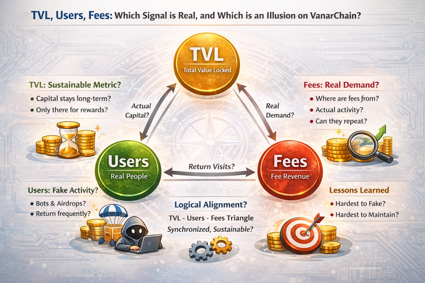 The most important thing I’ve learned, after all these years of seeing beautiful numbers unravel, is this: instead of asking which one is “higher,” ask which one is “hardest to fake” and “hardest to keep.” VanarChain can go very far if it manages to turn fees into a signal of real demand, users into a sign of returning behavior, and TVL into the natural consequence of an ecosystem that has earned its right to exist, rather than a stage for transient hype.