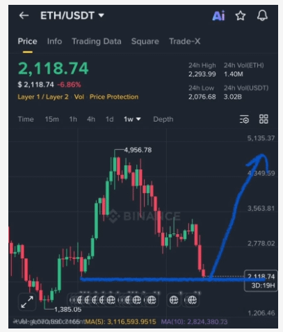 👉 O Ethereum está atualmente sendo negociado em torno de $2,118 após deslizar de volta de máximas recentes, aterrissando bem no meio do que muitos veem como uma zona de suporte crucial. A faixa de $1,800–$2,200 está chamando atenção como uma área potencial onde a hemorragia para e os compradores começam a aparecer novamente.