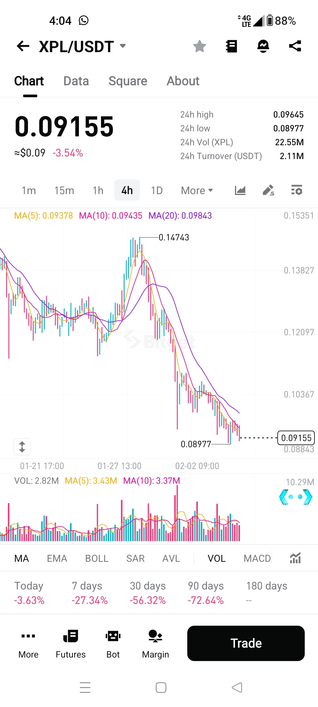 On the 4-hour chart, the current bearish pattern of $XPL is quite evident, with strong selling pressure being observed in the recent trading sessions. The price is making lower highs and lower lows, thus establishing a short-term #bearish trend. The rejection at the recent swing high was accompanied by a strong downtrend, thus establishing that the bears are in control.