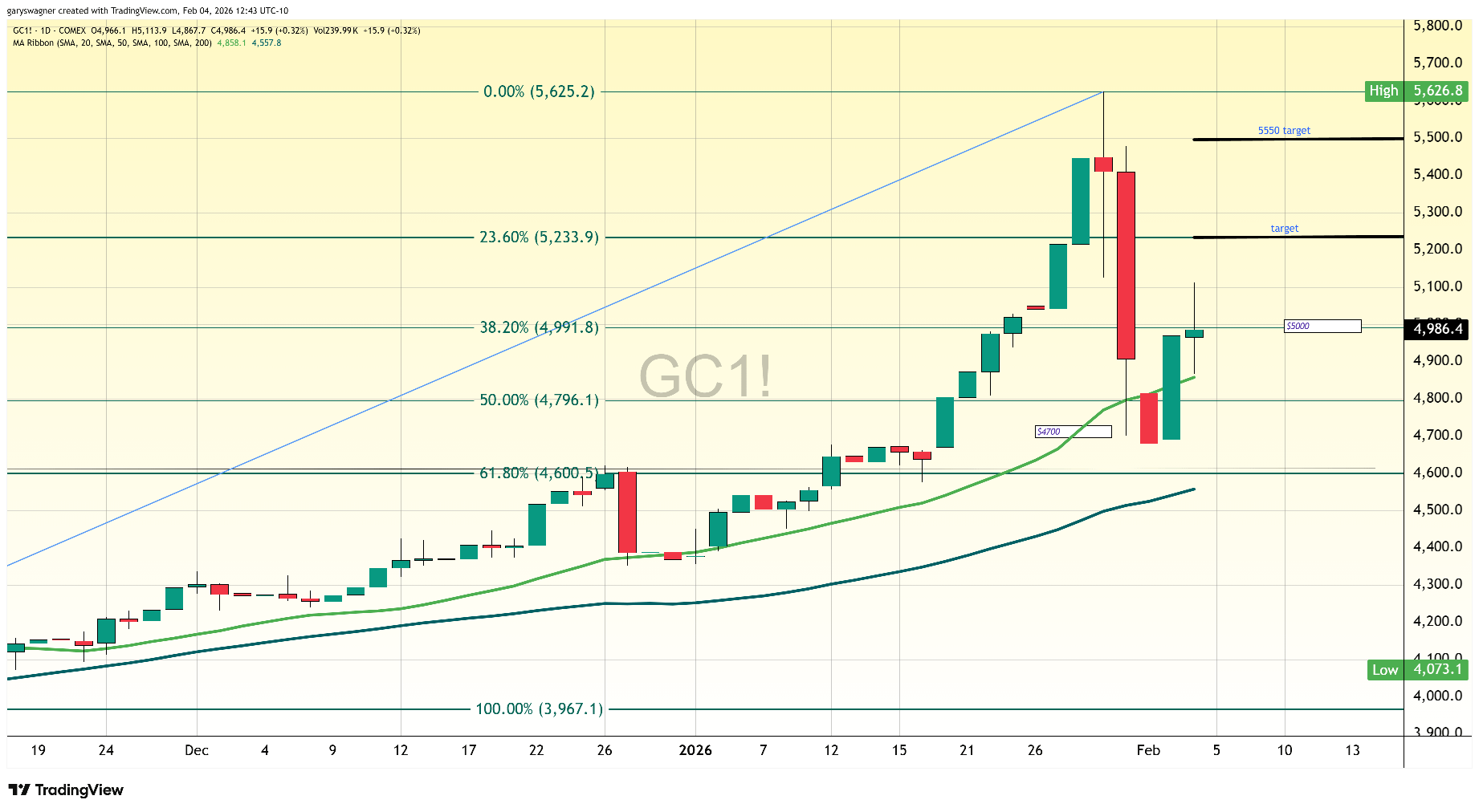 That is quite the rollercoaster for the metals market! It looks like we are seeing some historic price action—especially with Gold flirting with that $5,000 milestone.