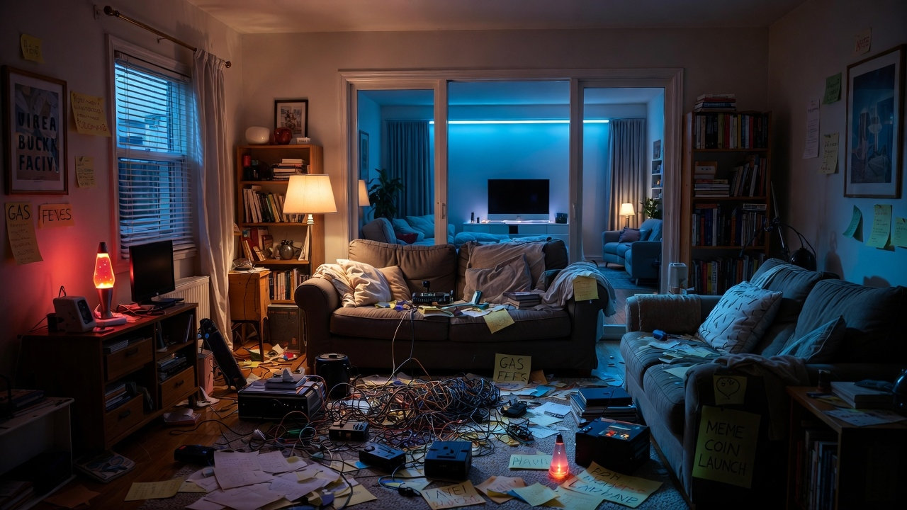 You just want to send your share of the rent ($USDC, please). It should be simple. But Eth-An has decided **today is the day** he’s going to launch his own meme coin, “DegenerateAlpaca,” for his online guild. Suddenly, the “hallway” (gas fees) you need to walk down to get to your roommate’s door costs $50. The line to get into the kitchen (mempool) is backed up for an hour. Your simple rent transfer is now competing with 500,000 people trying to buy a picture of a confused llama. You’re stuck in the doorway, holding your virtual cash, screaming internally.