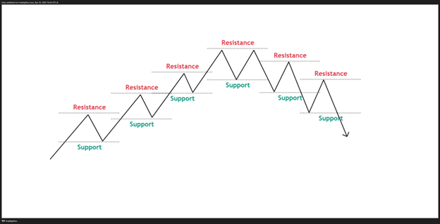 Imagine olhar para um gráfico de EUR/USD ou uma ação como AAPL. Cada pico e vale, cada rejeição em um nível de suporte ou resistência, é uma peça do quebra-cabeça. Quando você vê uma série de máximas e mínimas mais altas, isso indica que os compradores estão no controle, sinalizando uma tendência de alta. Por outro lado, máximas mais baixas e mínimas mais baixas indicam uma tendência de baixa. E quando os preços se estabilizam em máximas e mínimas iguais, o mercado provavelmente está lateral, movendo-se de lado sem uma direção clara.