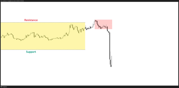 Você pode negociar a quebra entrando em posição curta no nível de suporte uma vez que ele
